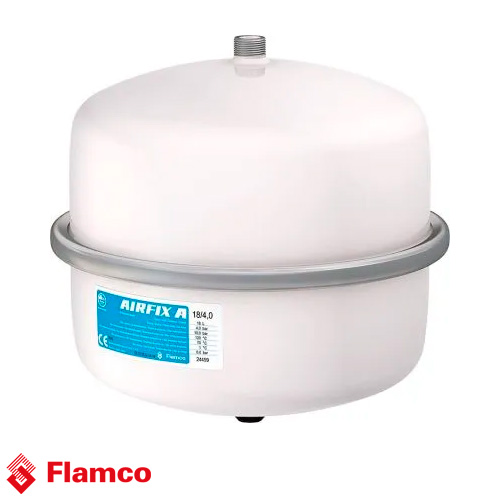 Мембранный расширительный бак Flamco серии Airfix (гидроаккумулятор) специально разработан для систем водоснабжения питьевой водой, а также систем повышения давления и водонагревательных бойлеров согласно стандарту DIN 1988-100-2011. Данный бак предназначен для подключения к линии входа холодной воды в бойлер от 150 до 200 литров.