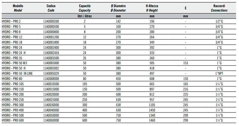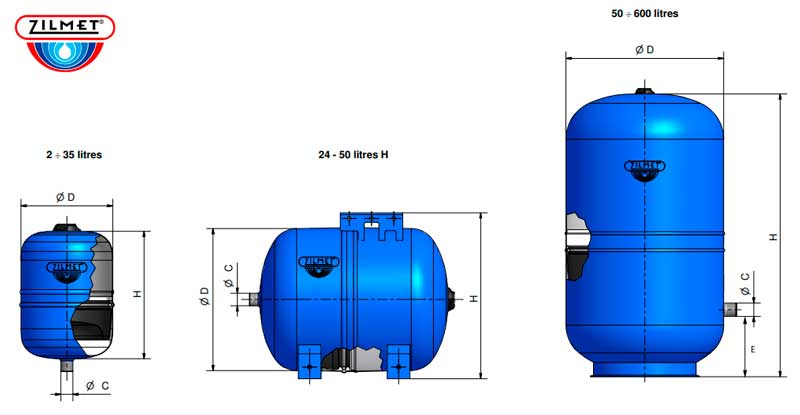 Технічний опис - Розширювальні баки Zilmet серії Ultra-Pro