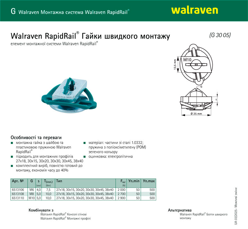 Описание продукта: Гайка быстрого монтажа Walraven BIS RapidRail M10 (6513110)