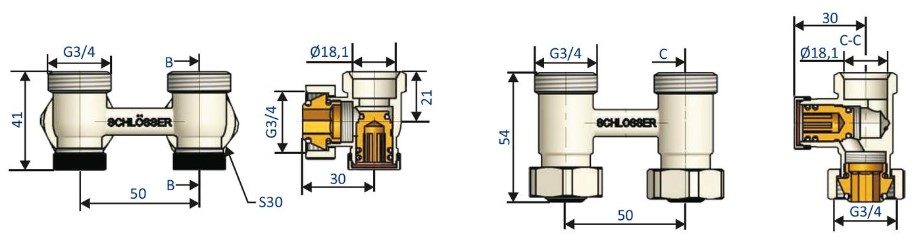 Схемы, чертежи Узел подключения Schlösser прямой GW3/4 x GZ3/4 белый (600700022)