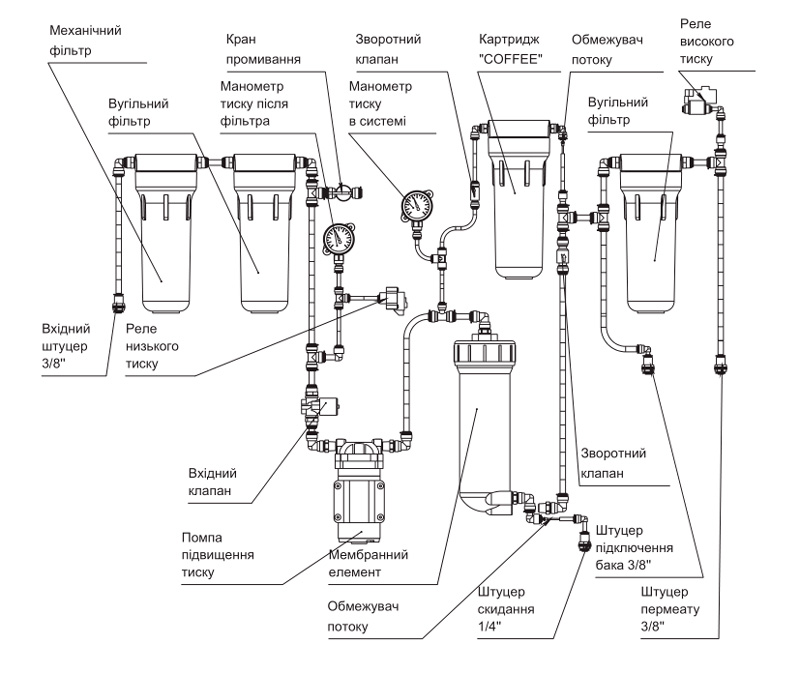 Технічний опис системи зворотного осмосу Ecosoft серії RObust COFFEE
