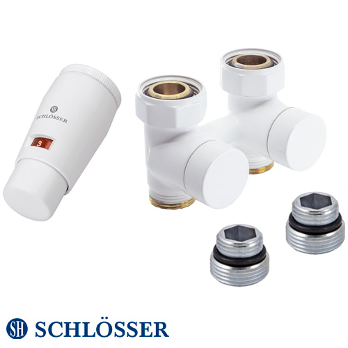 Опис продукту Комплект ексклюзивних вузлів Schlösser 3/4 x M 22х1,5 прямий +2 шт. ніпель, термоголовка MINI SH M30x1.5 (601000421)