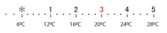 Термоелемент швидко реагує на зміну температури повітря, точно підтримуючи задане значення від +6°C до +28°C (±1°C).