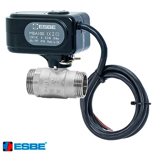 Компактный 2-ходовой моторизированный шаровой кран ESBE серии MBA120 со встроенным электроприводом для зональной регулировки в системах отопления, охлаждения и ГВС.